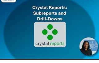 In this course, you'll continue developing your data-reporting skills in Crystal Reports by using Structured Query Language (SQL) statements to create and summarize report data, as well as create joins and subqueries. You'll also create more complex formulas by working with loops and arrays. These tools and techniques provide you with even greater control over how your data is presented.
