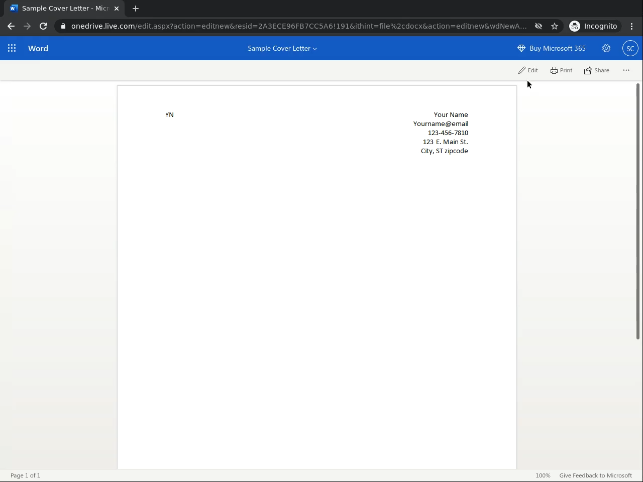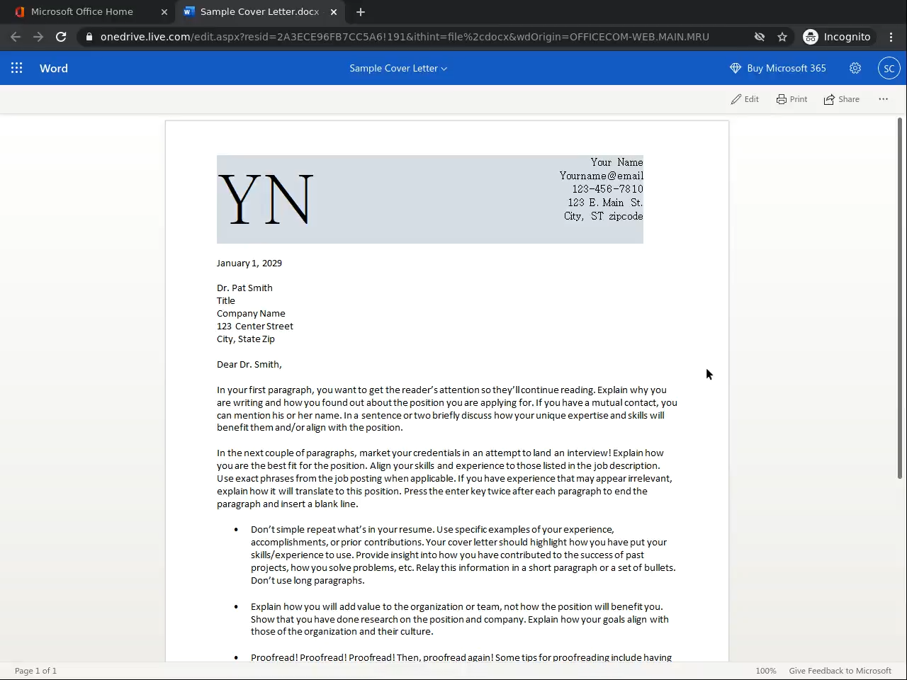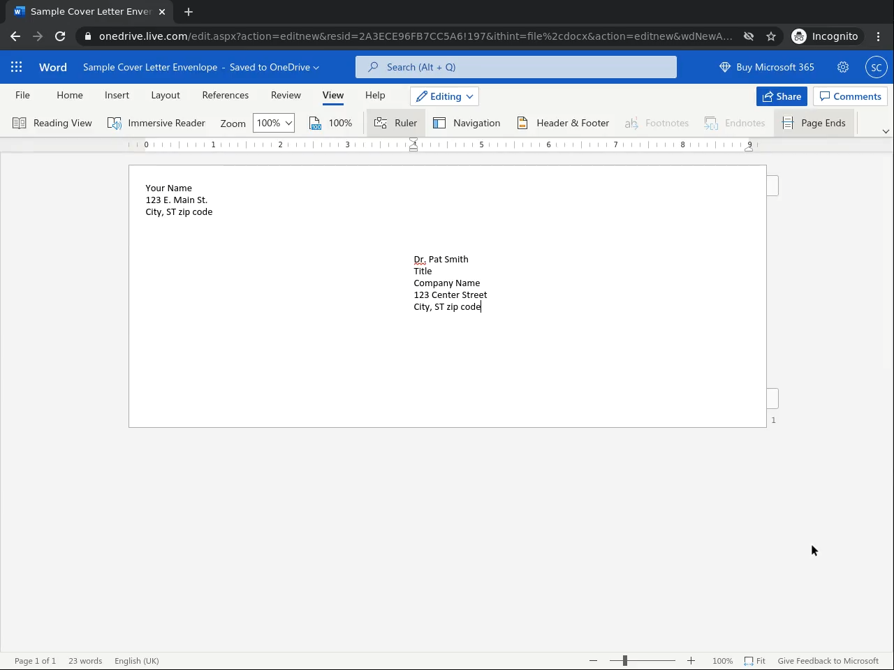 Created a cover letter with letterhead and an envelope using Microsoft Word.