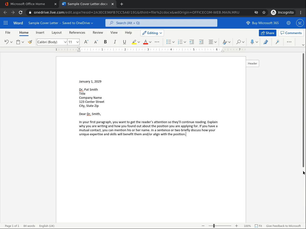 After successfully completing this project, you will have created a cover letter and an envelope using Microsoft Word.
