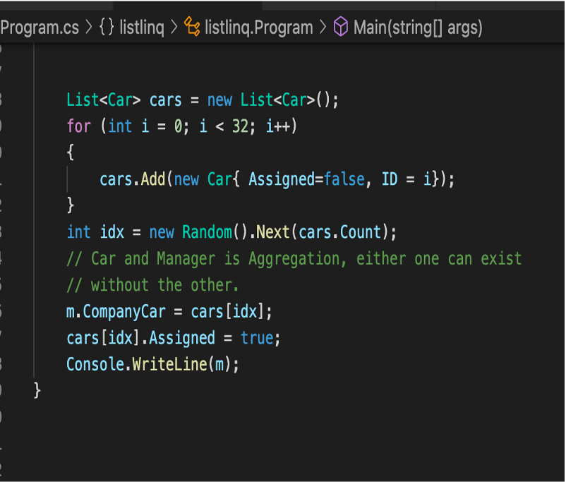 Add a Car C# class to demonstrate Aggregation with the Manager.
