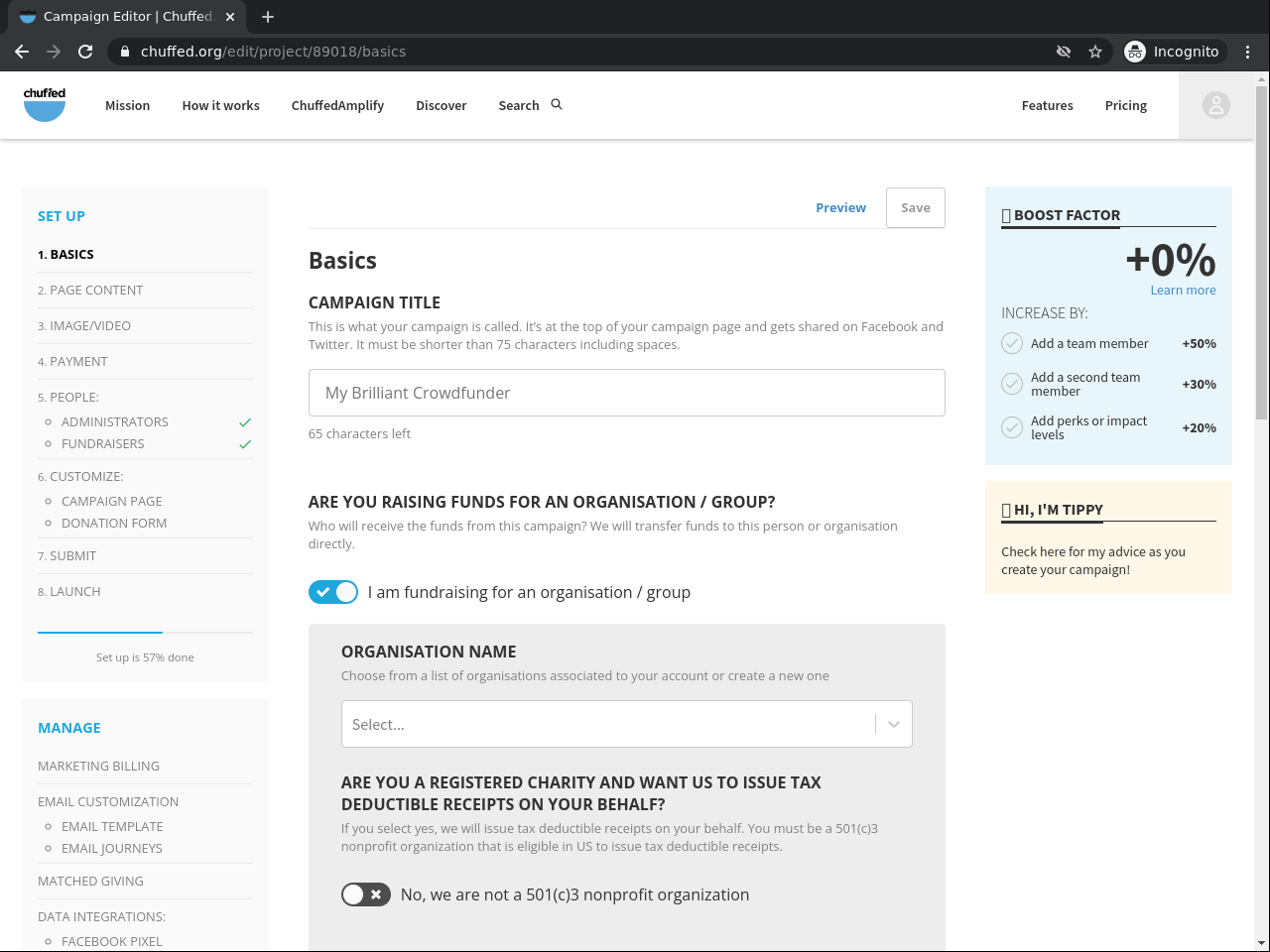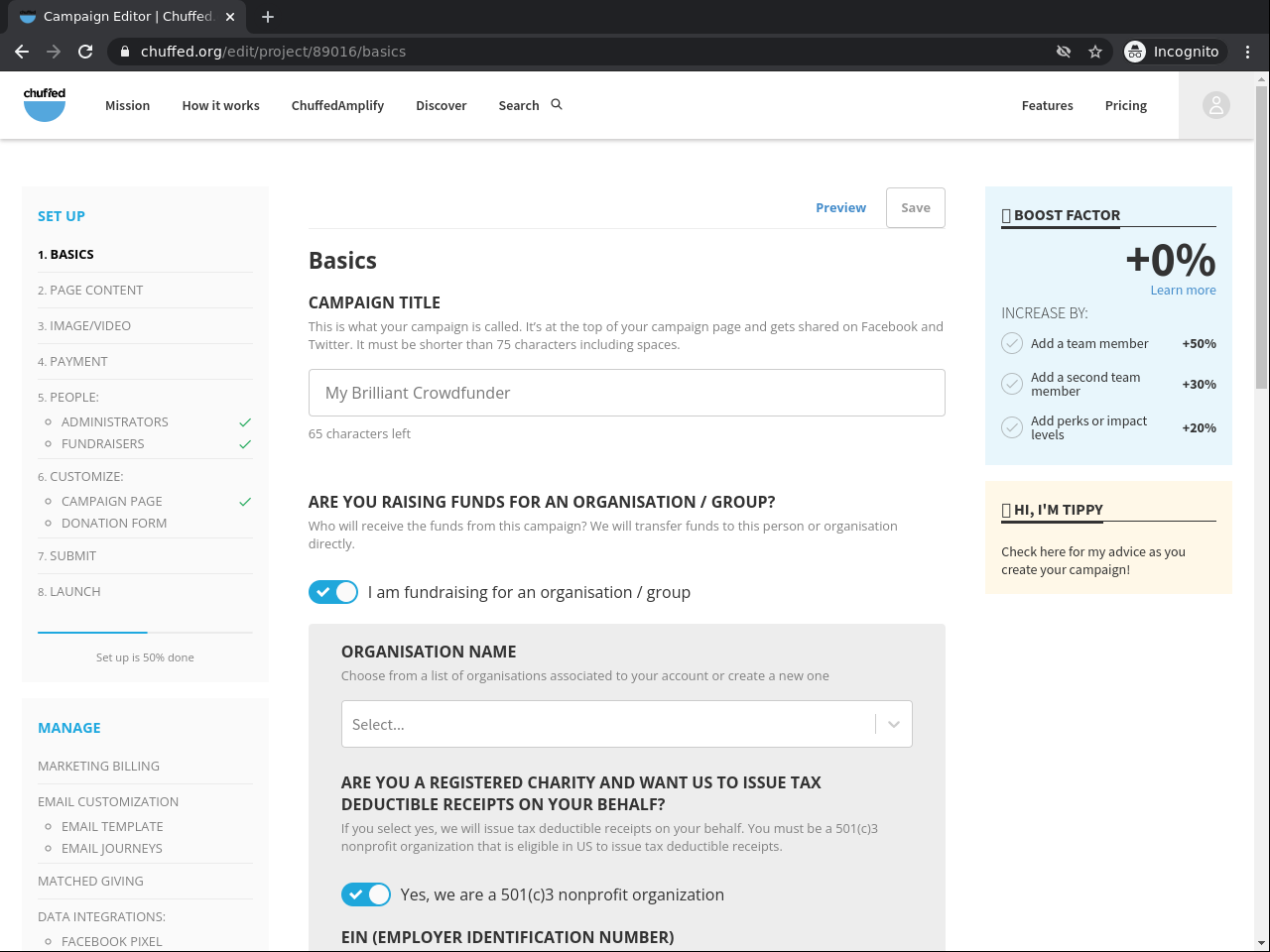 Ce projet guidé est une introduction à Chuffed et est conçu pour les personnes qui souhaitent avoir leur propre page de collecte de fonds pour un projet à but non lucratif, caritatif, pour supporter une entreprise sociale, un projet communautaire ou une personne dans le besoin. Chuffed offre une plateforme en ligne pour créer une collecte de fonds, à petite ou grande échelle, sans frais de mise en place par la plateforme. De plus, Chuffed offre des possibilités de développer un site page de collecte de fonds avec de nombreuses fonctionnalités et caractéristiques esthétiques. Après avoir terminé ce projet, vous pourrez créer une page de collecte de fond, sélectionner et modifier les principales fonctionnalités offertes sur la plateforme, définir vos buts financiers et participatifs et les récompenses potentiellement offertes à vos contributeurs. Chuffed est une plateforme simple et gratuite qui fournit une publicité en ligne extraordinaire à votre projet collaboratif et participatif. This course works best for learners who are based in the North America region. We’re currently working on providing the same experience in other regions