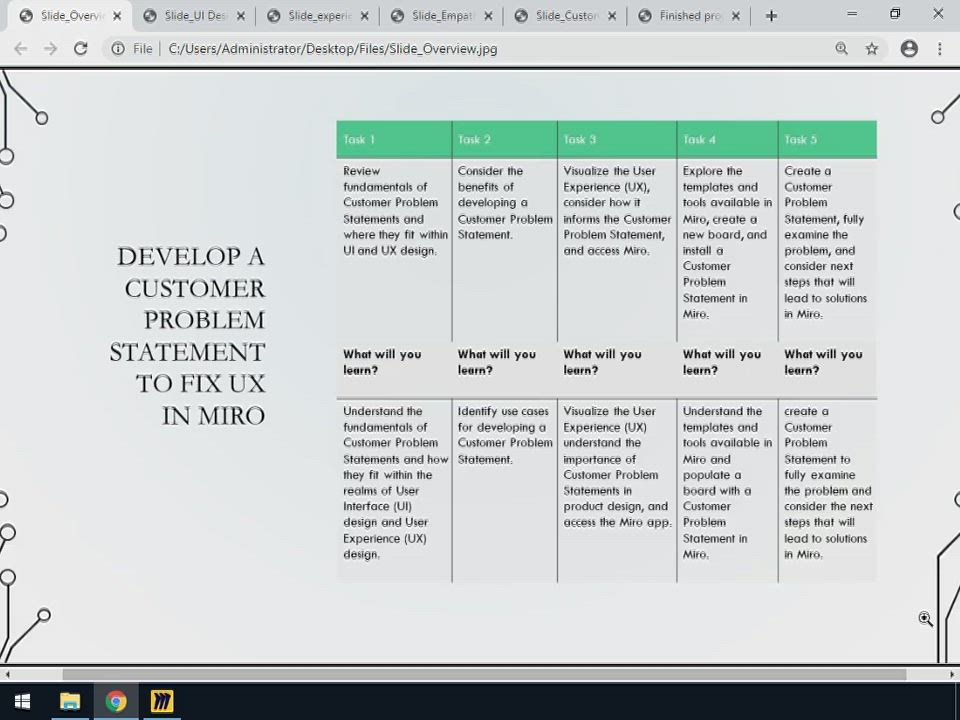 Visualize the User Experience (UX), consider how it informs the Customer Problem Statement, and access Miro. (6 min)