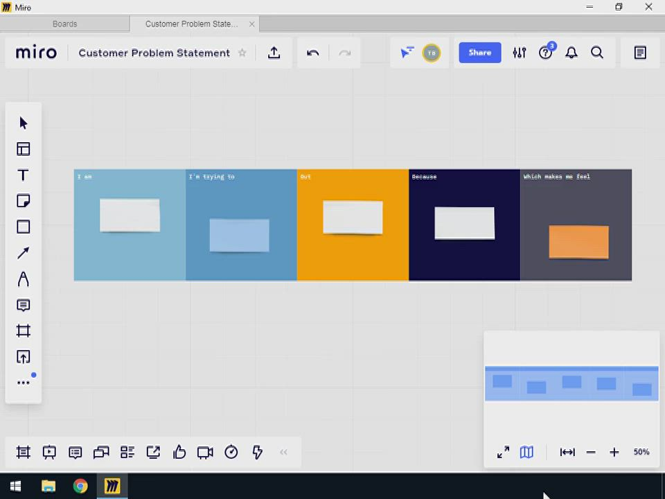 Understand the templates and tools available in Miro and populate a board with a Customer Problem Statement in Miro.