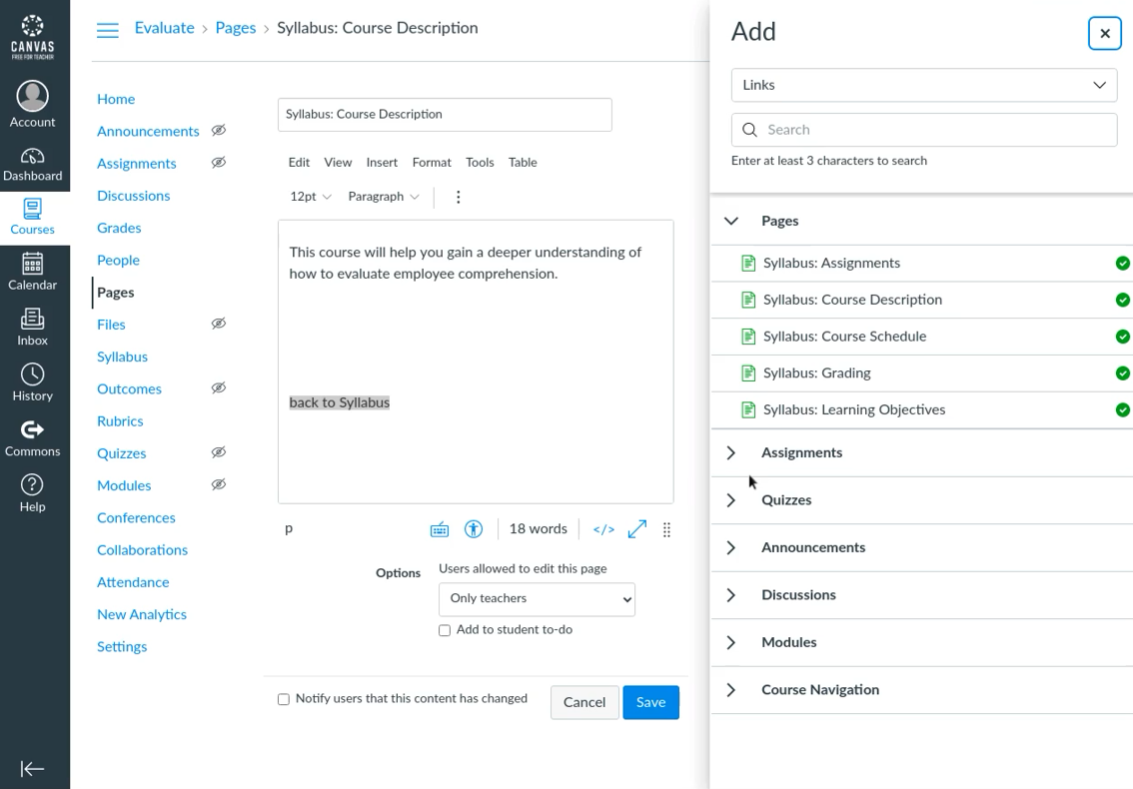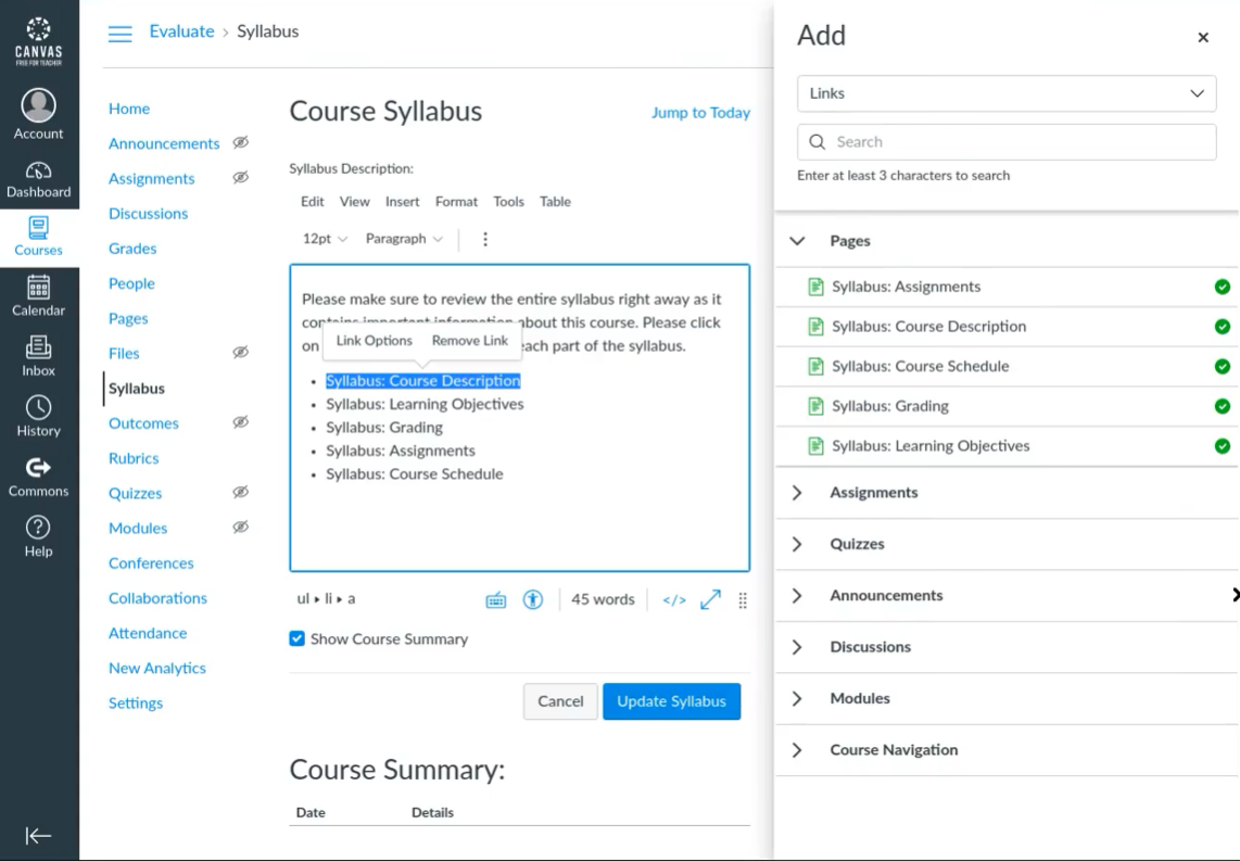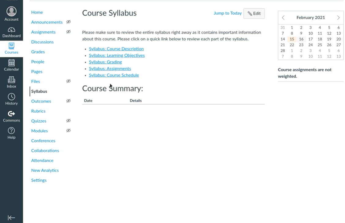 Create a course syllabus within a course shell in Canvas