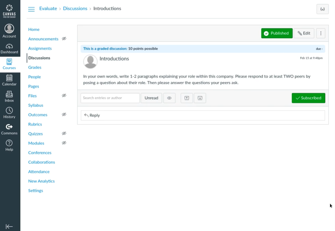 Write a Discussion Question: The student will work along with the instructor to create a discussion question and then independently develop a discussion question for their Canvas course.