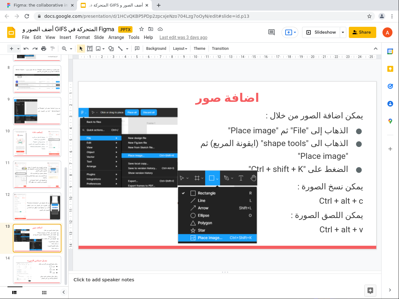 إضافة الصور والصور المتحركة في تطبيق فيغما