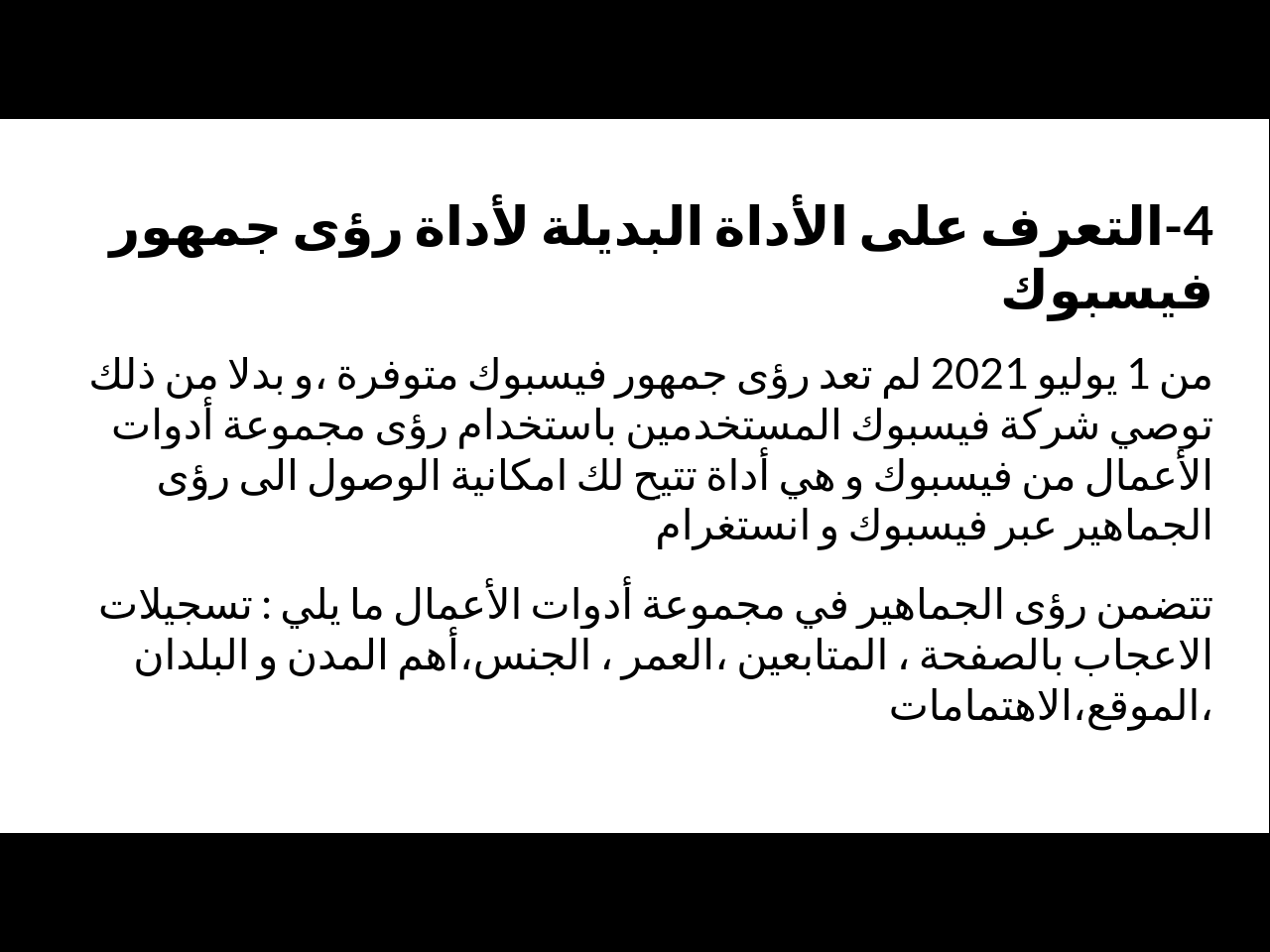 التعرف على الأداة البديلة لأداة رؤى جمهور فيسبوك