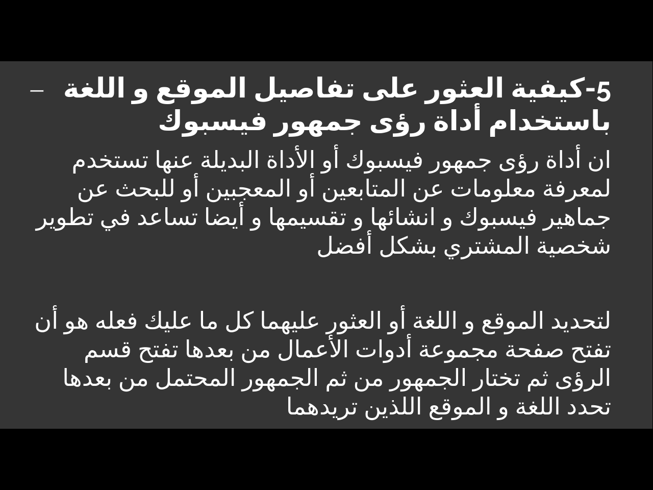 العثور على تفاصيل الموقع و اللغة باستخدام رؤى جمهور فيسبوك