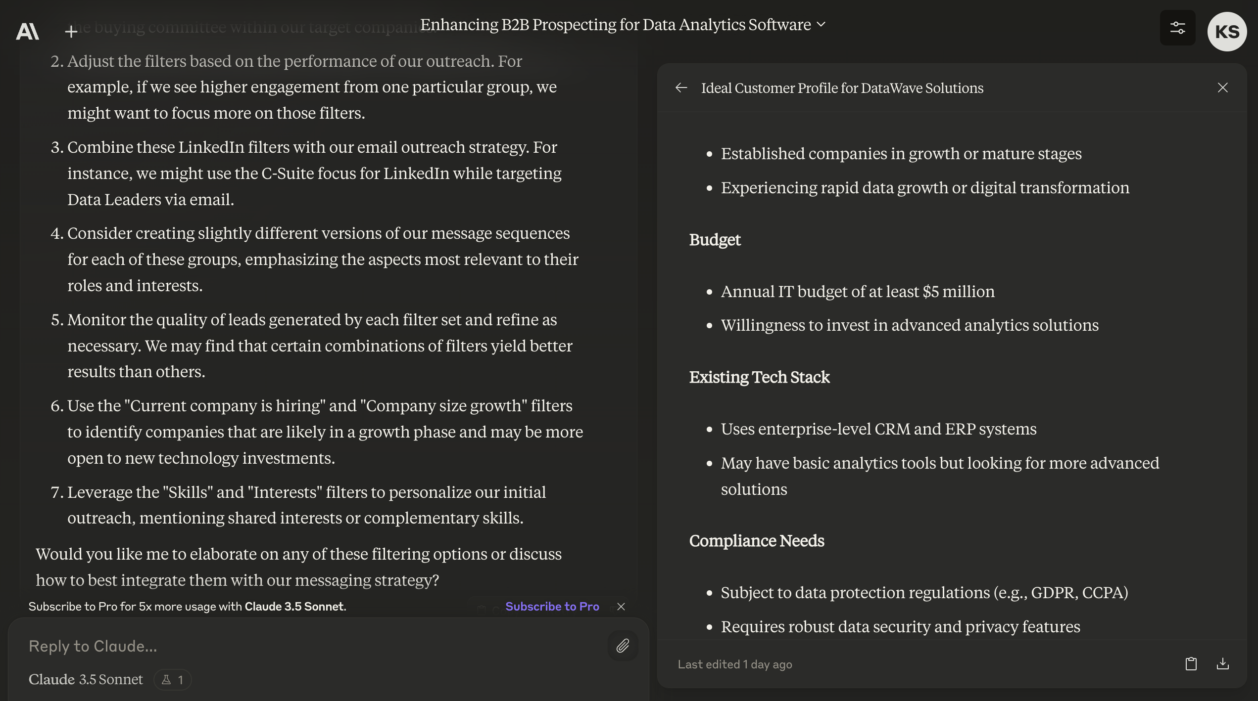 Use Claude AI to generate and optimize personalized content for LinkedIn and email, boosting B2B prospecting effectiveness.