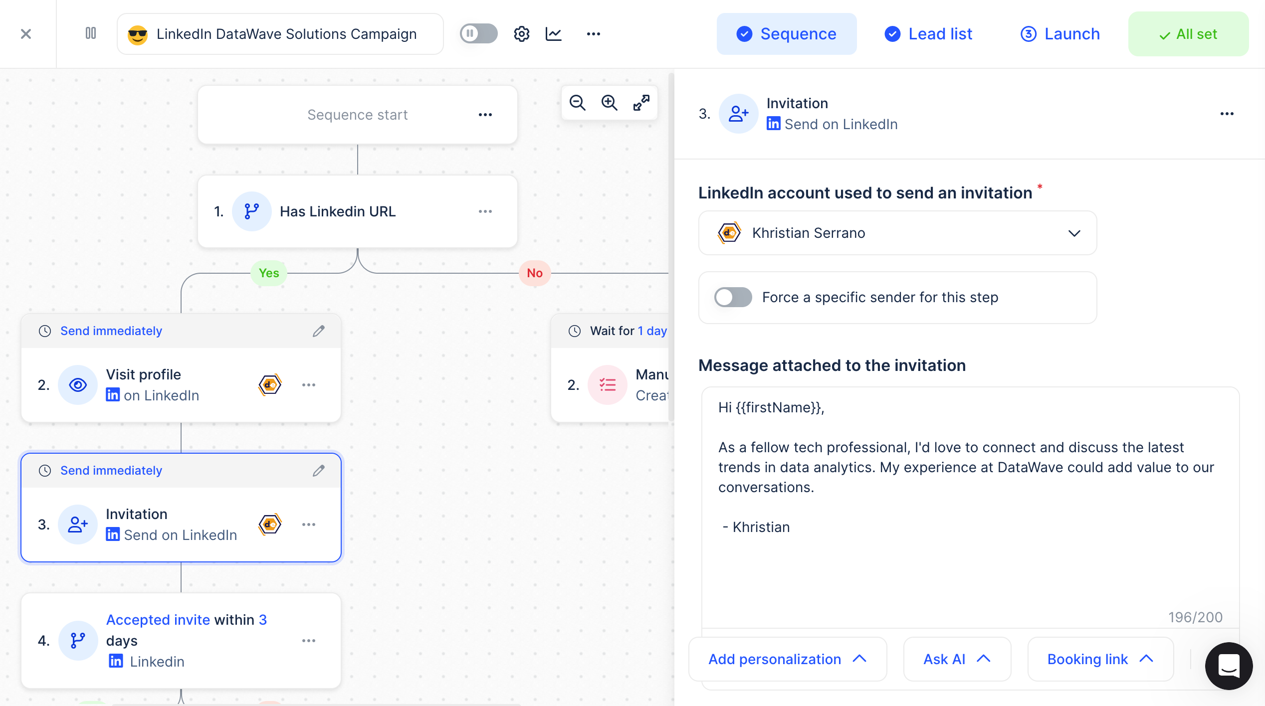 Task 4: Integrating & Launching Lemlist Email & LinkedIn Sequences
